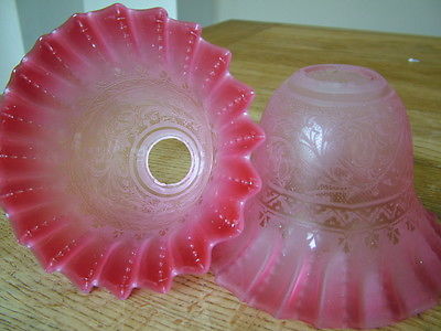 Title (ebay affiliate link): PAIR OF ANTIQUE CRANBERRY RUBY GLASS ETCHED LAMP LIGHT SHADES NO RESERVE