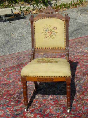 Title (ebay affiliate link): ANTIQUE WALNUT VICTORIAN NEEDLEPOINT SIDE VANITY CHAIR