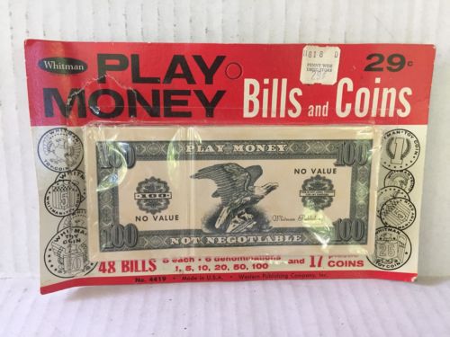 Vtg 60s Whitman PLAY MONEY New Old Stock NOS