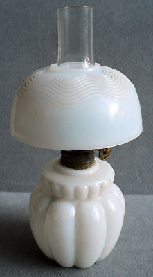 Vintage White Milk Glass Lobed Oil Lamp & Shade, Estate