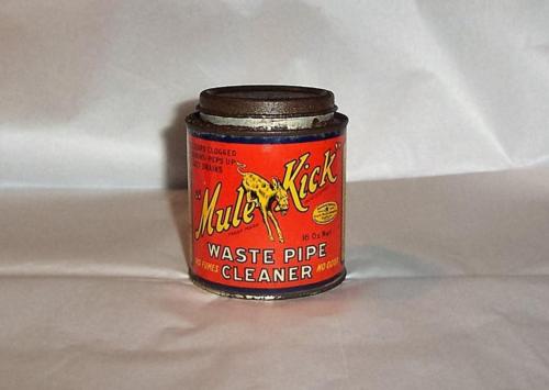 Title (ebay affiliate link): Mule Kick Sexauer Tin vtg Plumbing Poison Lye can Litho Donkey 1931 Ont. empty