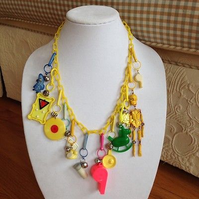 Title (ebay affiliate link): Vintage Retro 80's charm clip plastic necklace record telephone whistle glasses