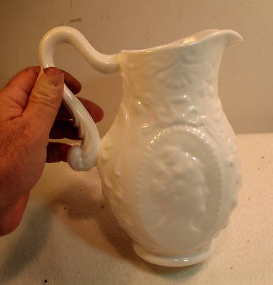 Vintage Fostoria Milk Glass Jenny Lind Cameo Pitcher