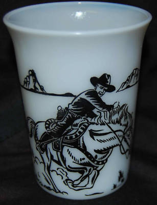 VINTAGE "HOPALONG CASSIDY" MILK GLASS TUMBLER