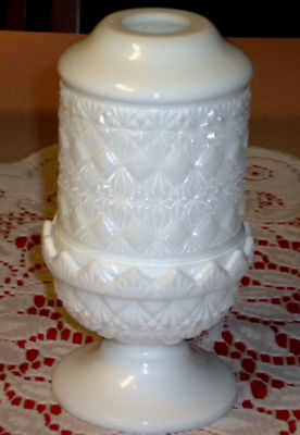 Vintage MILK GLASS DIAMOND AND FAN FAIRY LAMP NICE!