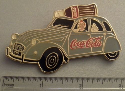Title (ebay affiliate link): Nice old big Tintin in grey Citroen 2 CV Coca Cola Pin Coke Herge Look