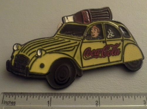 Title (ebay affiliate link): Nice old big Tintin in yellow Citroen 2 CV Coca Cola Pin Coke Herge Look