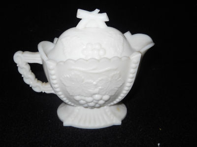 BEAUTIFUL LITTLE MILK GLASS CREAMER WITH LID