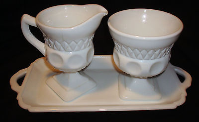 Vintage Indiana Kings Crown Thumbprint White Milk Glass Creamer & Sugar Tray