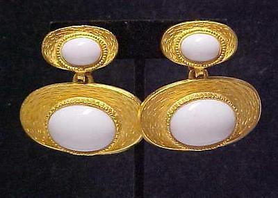 FAB! VINTAGE LES BERNARD LARGE MILK GLASS RUNWAY EARRINGS