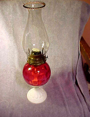 Title (ebay affiliate link): Vintage Cranberry Thumbprint And Milk Glass Kerosene/Oil Lamp