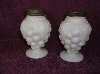 Antique Milk Glass Salt & Pepper SHAKERS, "Four Leaf Grape" Pattern