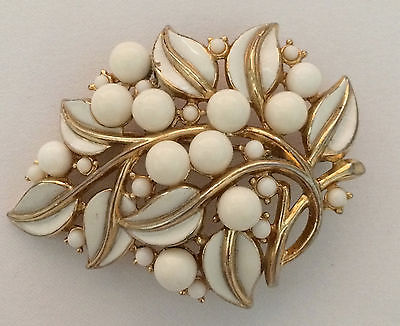 Title (ebay affiliate link): Timeless Classic! Vintage Gold Tone Enamel & Milk Glass Crown Trifari Brooch/Pin