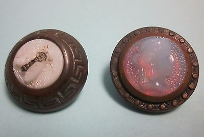 2 Antique Buttons Saphiret Glass Cameo & Milk Glass Fly Insect Victorian