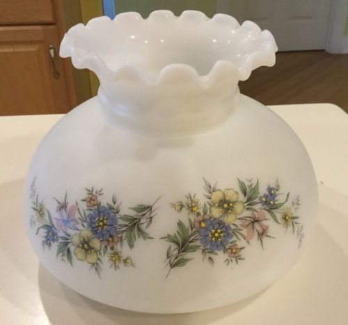 Title (ebay affiliate link): Vintage Handpainted Floral Milk Glass Oil Kerosene Hurricane Lamp Shade 6.75"