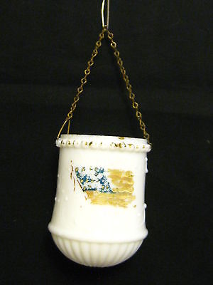 Antique Hanging Kerosene Oil Parlor Lamp Milkglass Match Holder w Brass Chain