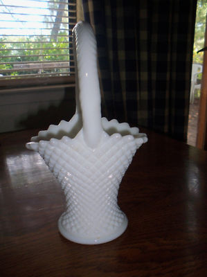 VINTAGE TALL MILKGLASS MILK GLASS BASKET VASE