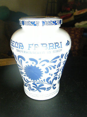 Empty Italian Amarena Fabbri Blue & White Milk Glass Jar Container