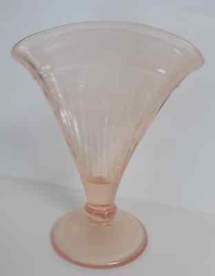 Pink Depression Glass Fan Shaped Vase Footed Ribbed