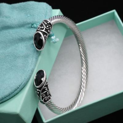 Antique Silver Spiral Black Opening Bangle Bracelet