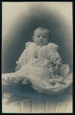 Dora Lumb Baby Child Girl TOY Doll vintage old 1910s real private photo postcard