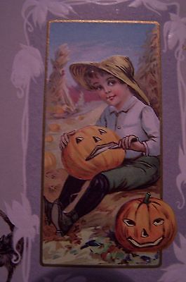 Title (ebay affiliate link): HALLOWEEN POSTCARD ~ BOY CARVING PUMPKINS ~CORN FIELDS, OWL, BLACK CAT, X-LENT