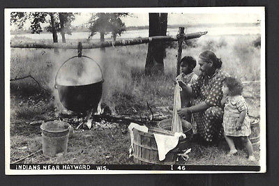 Title (ebay affiliate link): Indians near Hayward, Wisconsin. Obijway Chippewa Indians RPPC 1951