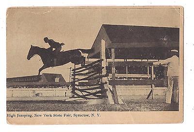 Title (ebay affiliate link): B&W Postcard-NY State Fair Syracuse NY-High Jump-Horse & Rider in 1908-Trainer