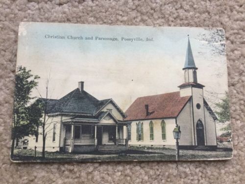 Title (ebay affiliate link): 1913 postcard of Christian Church And Parsonage Poseyville Indiana IN
