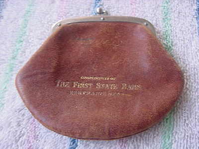 Antique Leather Money Coin Purse First State Bank Bertrand Nebraska Works Great'