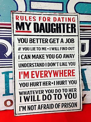 RULES FOR DATING DAUGHTER EMBOSSED METAL SIGN FORD CHEVY DODGE AUTO MAN CAVE