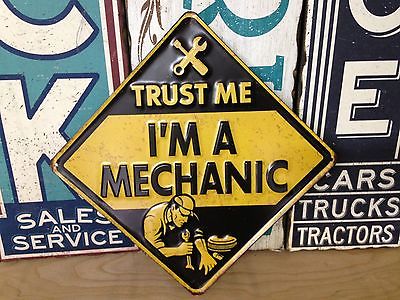 TRUST ME IM A MECHANIC EMBOSSED METAL SIGN FORD CHEVY MECHANIC GARAGE MAN CAVE