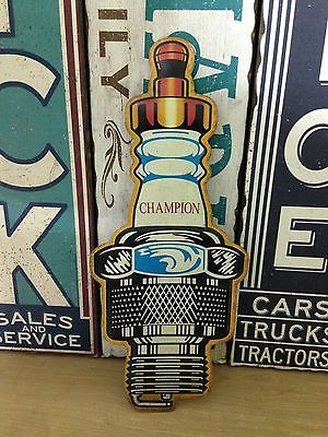 CHAMPION SPARK PLUG EMBOSSED METAL SIGN,FORD CHEVY DODGE GARAGE MAN CAVE