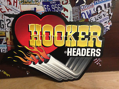 LARGE 18" HOOKER HEADERS HEART MUFFLERS EMBOSSED METAL SIGN GARAGE,SHOP,MAN CAVE