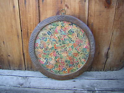 ANTIQUE PRIMITIVE OLD STAMPS DECOUPAGE on WOOD-WALL HANGING