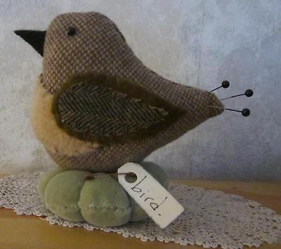 PRIMITIVE WOOL WREN SPARROW BIRD MAKE DO PIN CUSHION PFATT