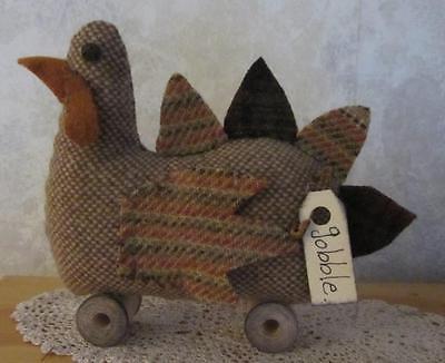 PRIMITIVE WOOL THANKSGIVING TURKEY SPOOLS MAKE DO SHELF SITTER PFATT