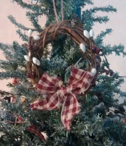 Title (ebay affiliate link): Set / 6 primitive mini grapevine wreath Christmas ornaments with berries