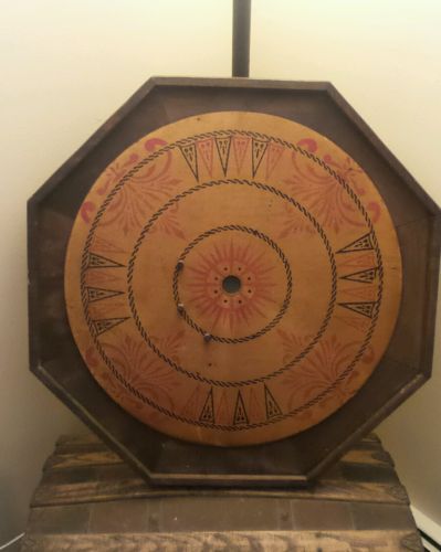 Title (ebay affiliate link): Antique Folk Art Wooden Double-Sided Crokinole & Checkers Painted Game Board