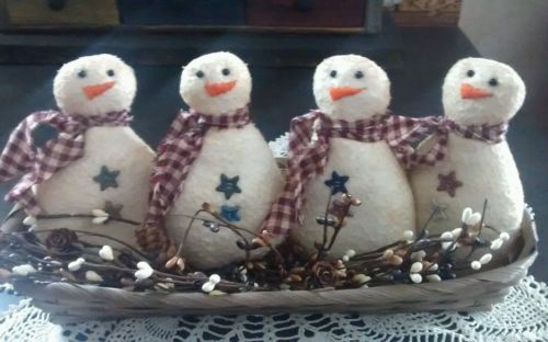 Title (ebay affiliate link): Set of 4 handmade primitive snowman ornies / bowl fillers with star buttons.