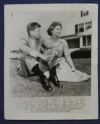 Title (ebay affiliate link): Senator John F. Kennedy Jacqueline Bouvier June 1953 AP wire press photo RARE