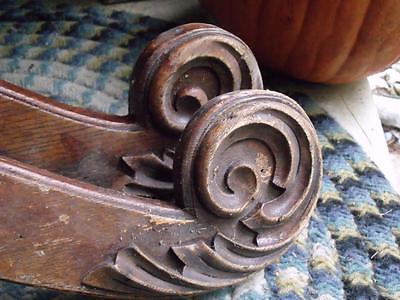 2 Large Matching Primitive Antique Solid Oak Pediments Fancy Swirly Decorations