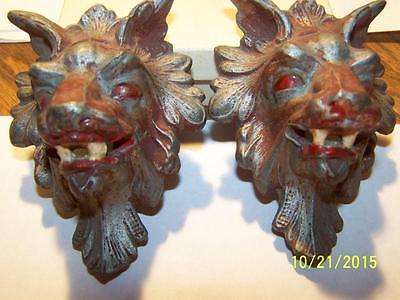 SET OF 2 DEMON/LION CAST IRON DRAWER PULLS-SEE DESCRIPTION/PICTURES