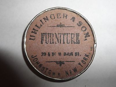 ANTIQUE Paper ADVERTISING POCKET MIRROR Uhlinger & Son Johnstown NY FURNITURE