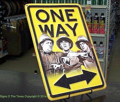 Three Stooges One Way 3D Metal Mopar Chevy Ford Moe Larry Curly 3 Man Cave Funny