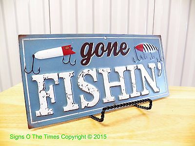 Gone Fishin 3D Metal Deco Father Dad Chevy Ford Mopar Garage Hunting Fishing NRA