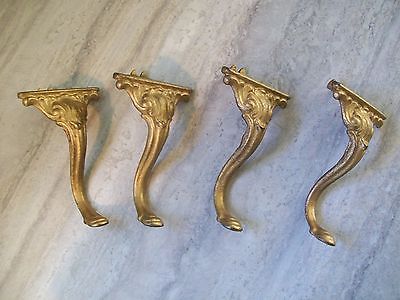 SET OF 4 ANTIQUE CAST IRON GOLD FOOT STOOL BENCH TABLE FEET LEGS SALVAGE