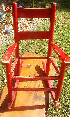 VINTAGE CHILD'S WOOD ROCKING CHAIR PAINTED RED