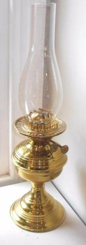 VINTAGE BRASS OIL LAMP WITH GLASS CHIMNEY