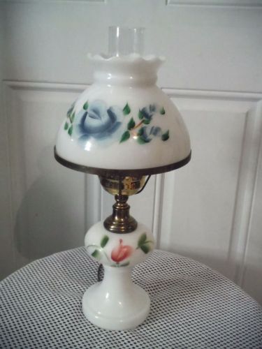 Title (ebay affiliate link): VINTAGE FEDERAL MILK GLASS GWTW HURRICANE STYLE OIL LAMP HANDPAINTED ELECTRIC